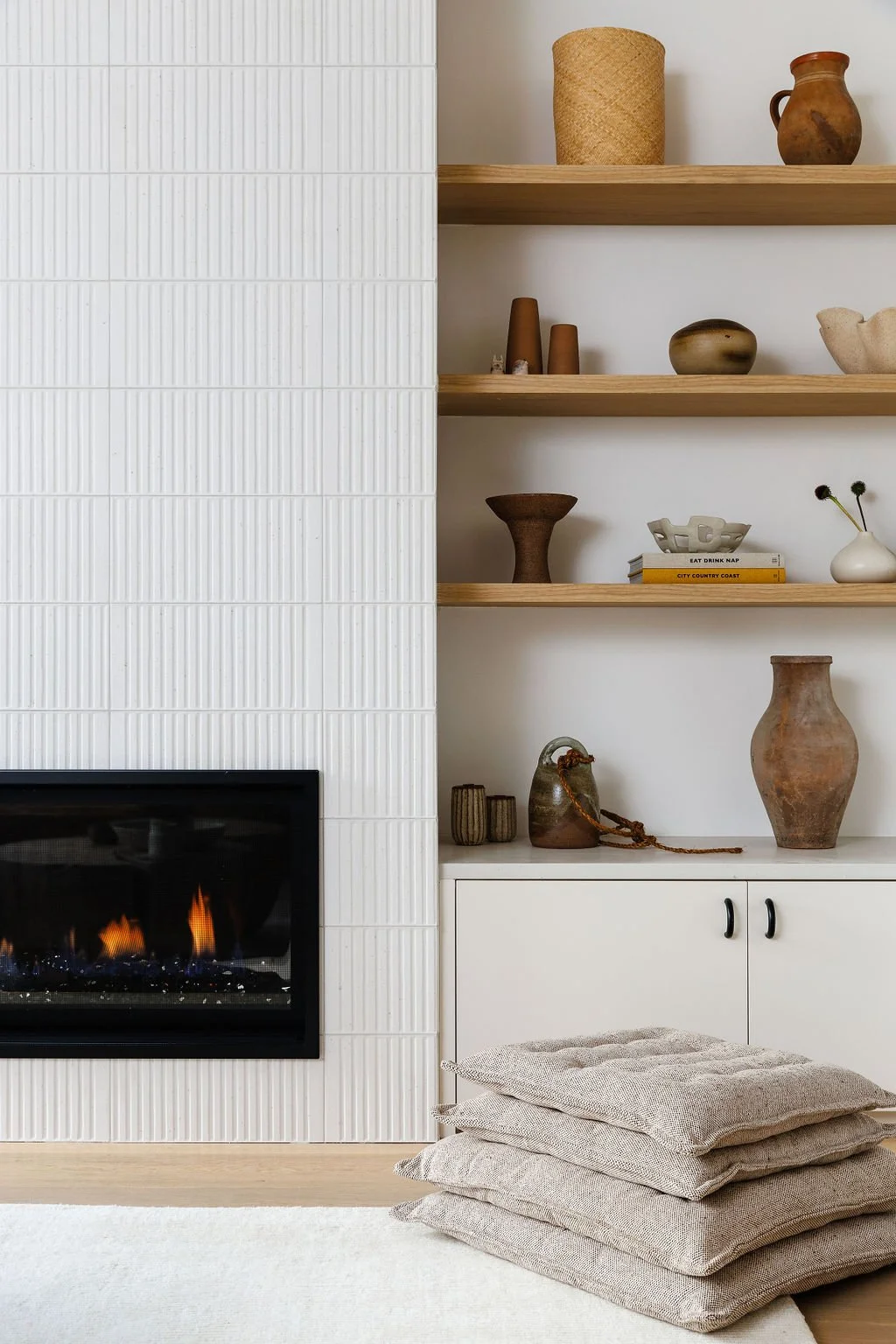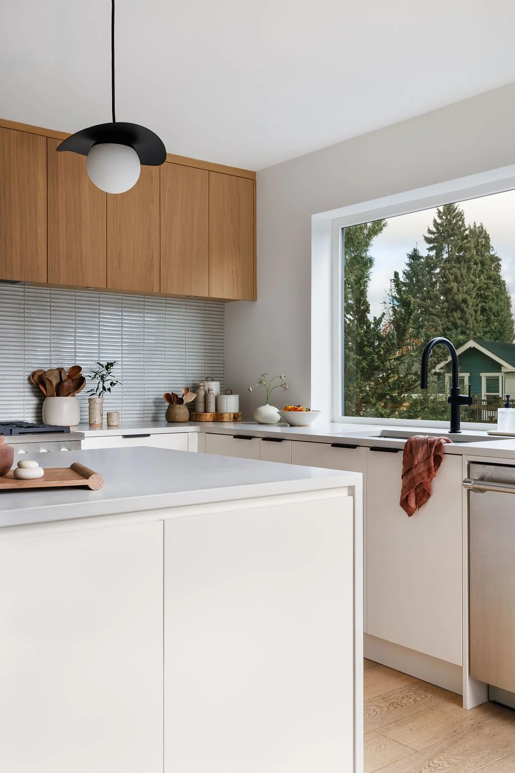 A kitchen renovation turned whole-home facelift with a focus on a minimalist colour palette loaded with layered textures, creating a harmonious environment for relaxed daily living for this ceramic-loving homeowner.